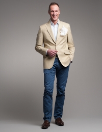 nerdy mit karriertem Hemd und Fliege zur beigen/braunen Chino